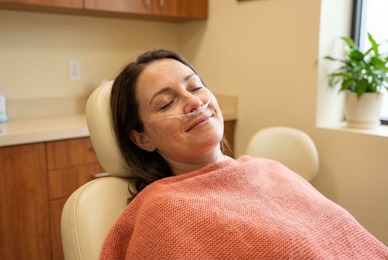 Nitrous oxide, sometimes called laughing gas, helps anxious patients relax during dental treatment. You breathe it through a small mask that rests on your nose. Within a few minutes, you feel calm and a bit floaty. You stay awake and can respond to questions, but the anxiety fades. When we remove the mask, the effects clear within minutes. There is no hangover, no lasting drowsiness. You can drive yourself home and go about your day.